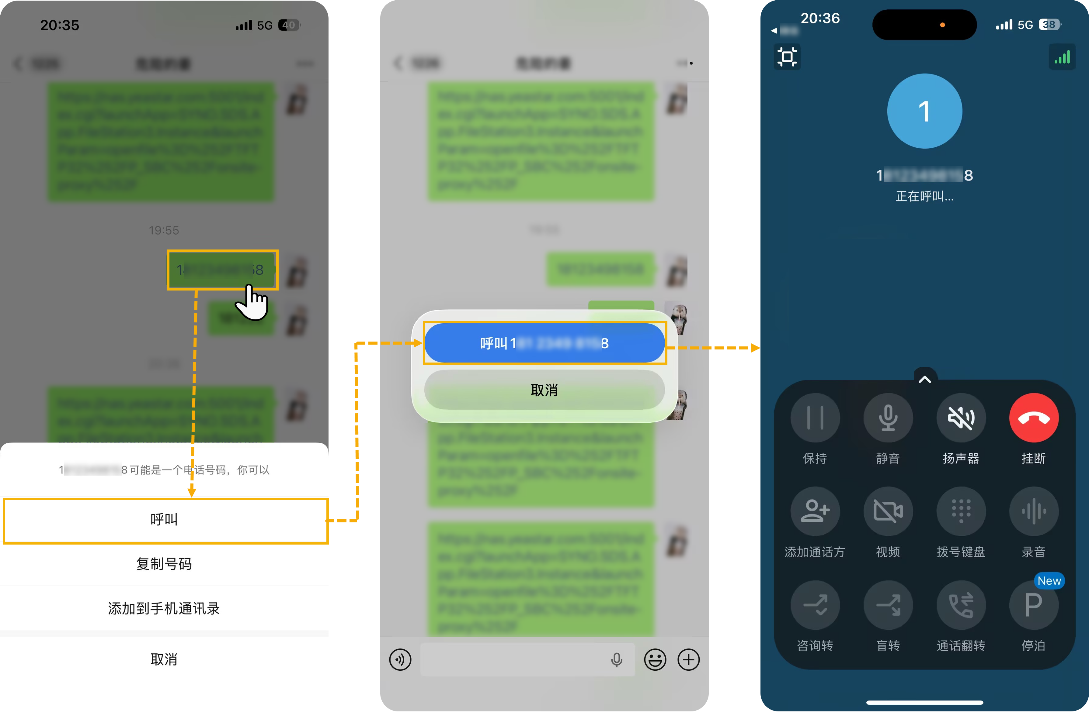 设置后,你可以点击设备识别到的电话号码,选择 呼叫,即可直接通过 Linkus 客户端发起通话。