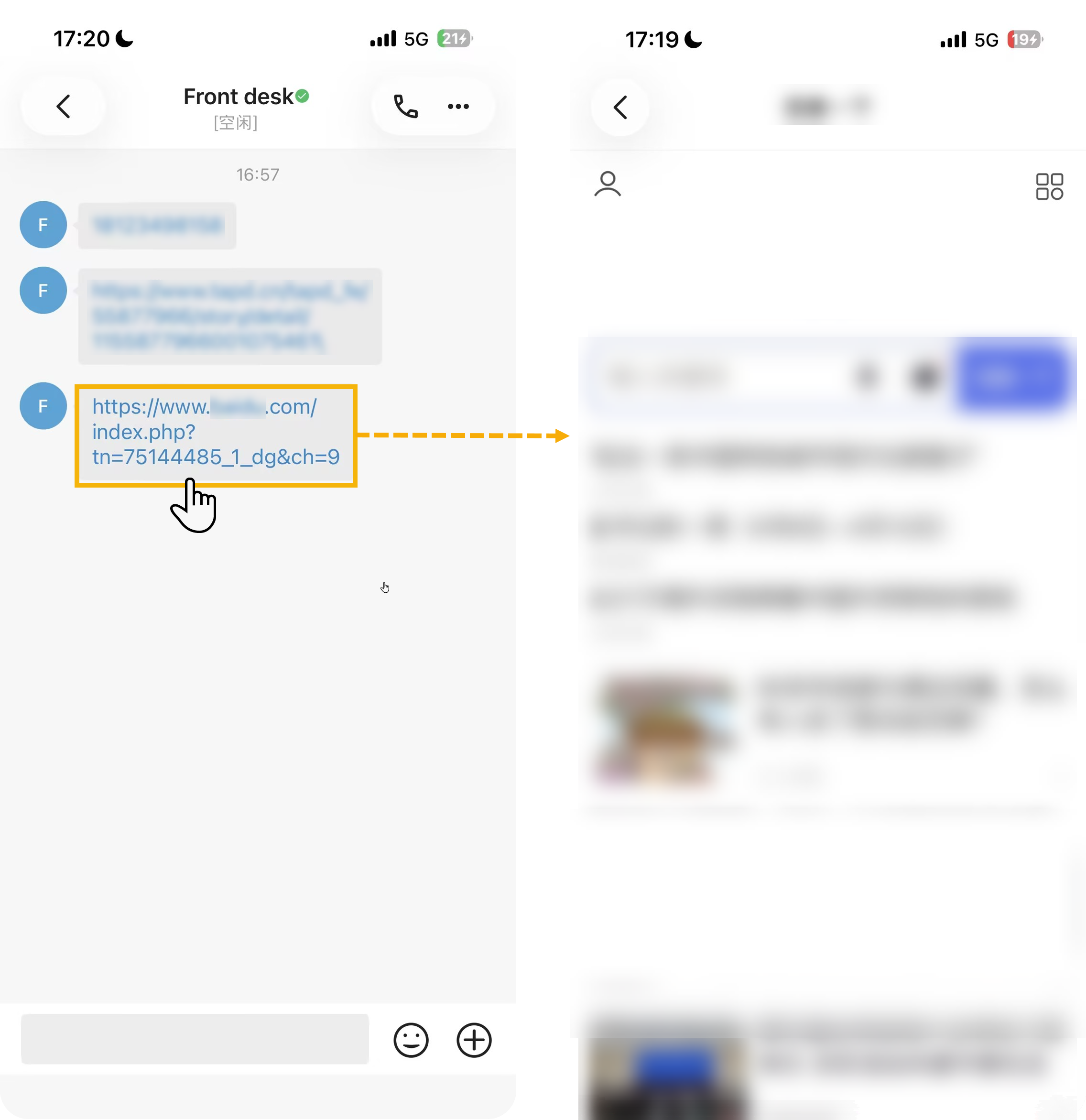 - 如果文本消息被识别为链接,点击该链接即可自动在 Linkus 客户端内跳转到对应网页。