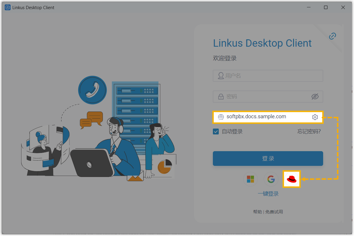 - 支持使用 Red Hat 账户通过单点登录 (SSO) 登录 Linkus 桌面端。注: 要使用该功能,需要满足以下要求: