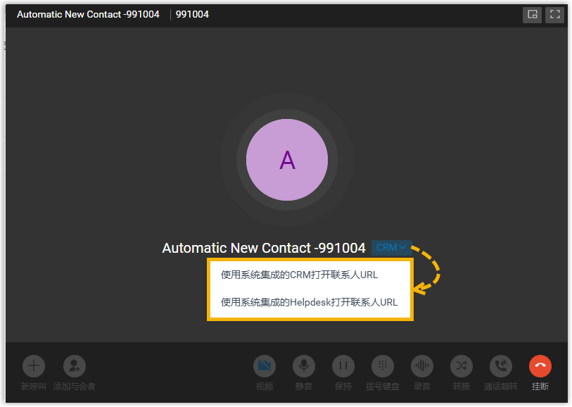 使用系统集成的Helpdesk打开联系人URL 选项,支持自动或手动打开联系人 URL:注: 此设置仅在系统管理员将 PBX 服务器与 CRM/Helpdesk 系统集成后可用。