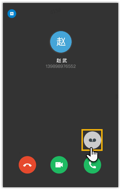 当收到来电时,点击来电界面中的