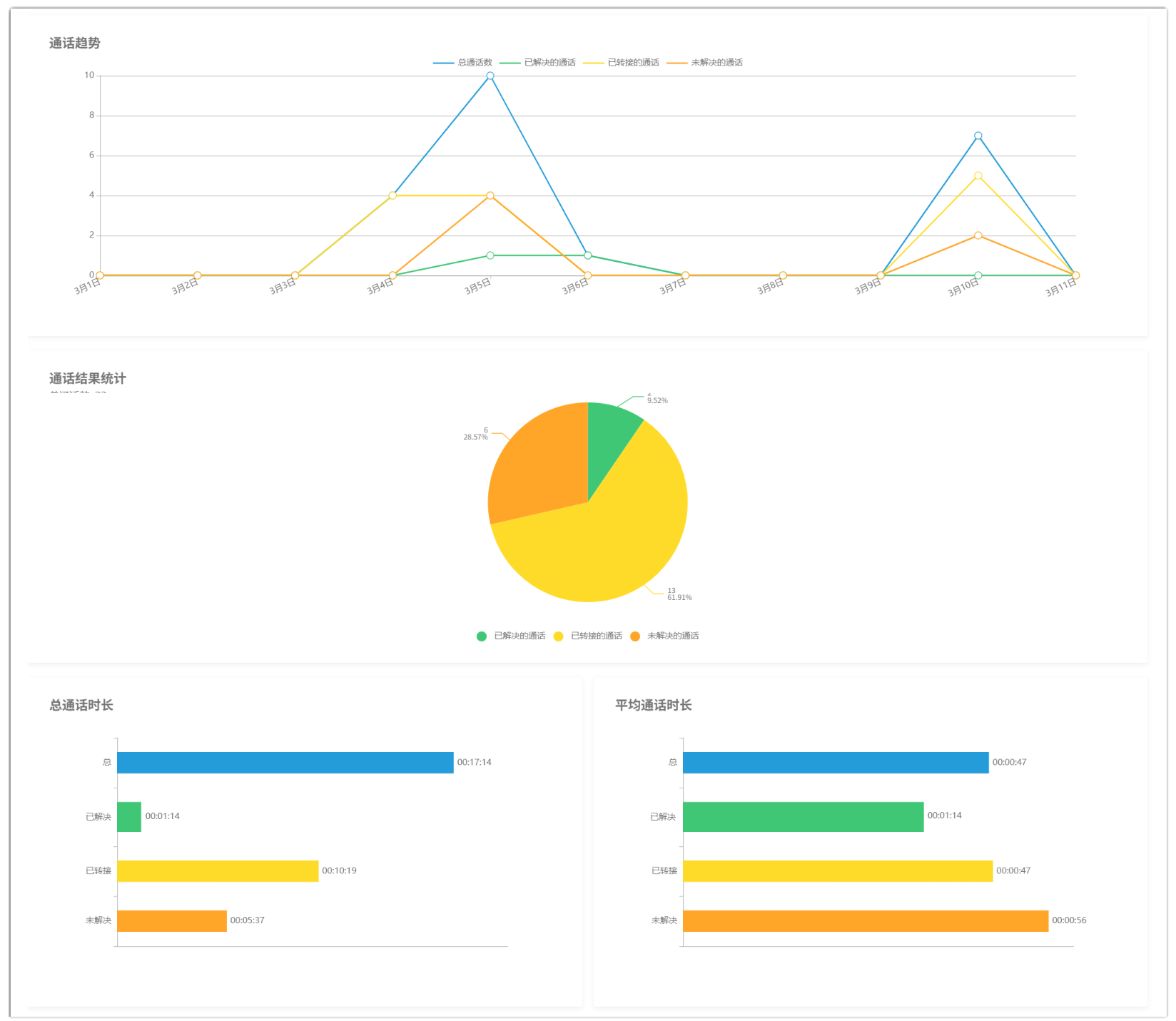 - 通话统计数据