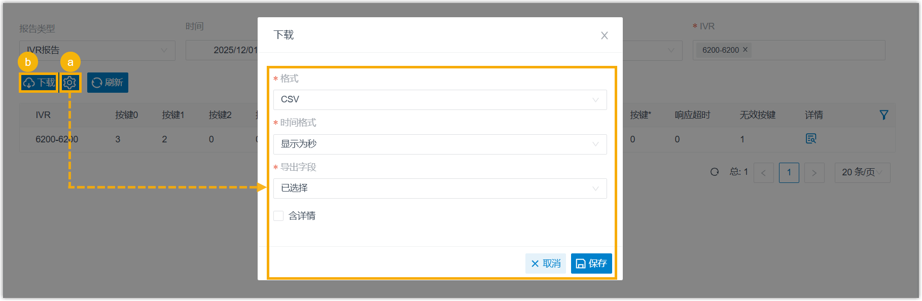 - 含详情:选择仅下载列表数据,还是包含详细记录。若选择包含详细记录,还需指定详情的下载方式。