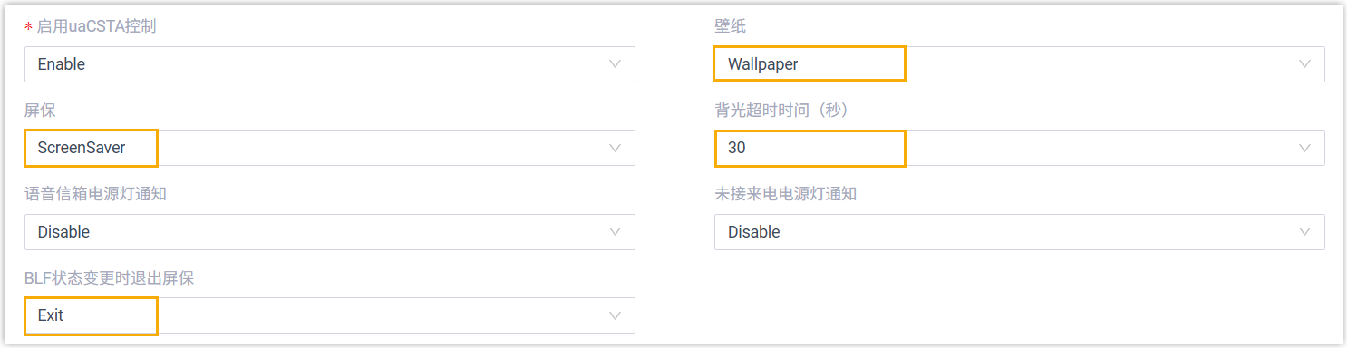 - BLF状态变更时退出屏保:配置当BLF状态发生变化时,话机是否自动退出屏保。