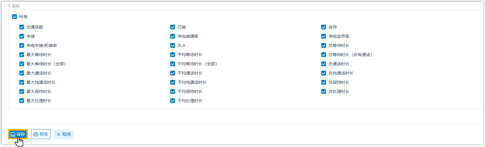 注: 基于默认报告创建的通话报告不支持修改此项,将沿用默认报告的设置。 - 点击 保存。
