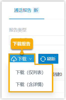 - 下载 (含详情):下载列表中的 IVR 按键数据,以及对应的 IVR 通话详情。