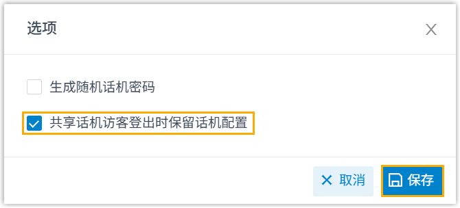 - 在弹出的窗口中,勾选 共享话机访客登出时保留话机配置,然后点击