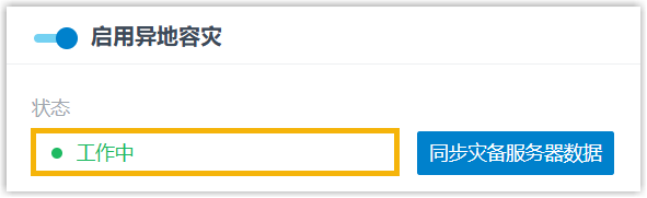 灾备状态,表示此服务器在灾备状态中。灾备服务器此时开始从工作服务器同步数据。