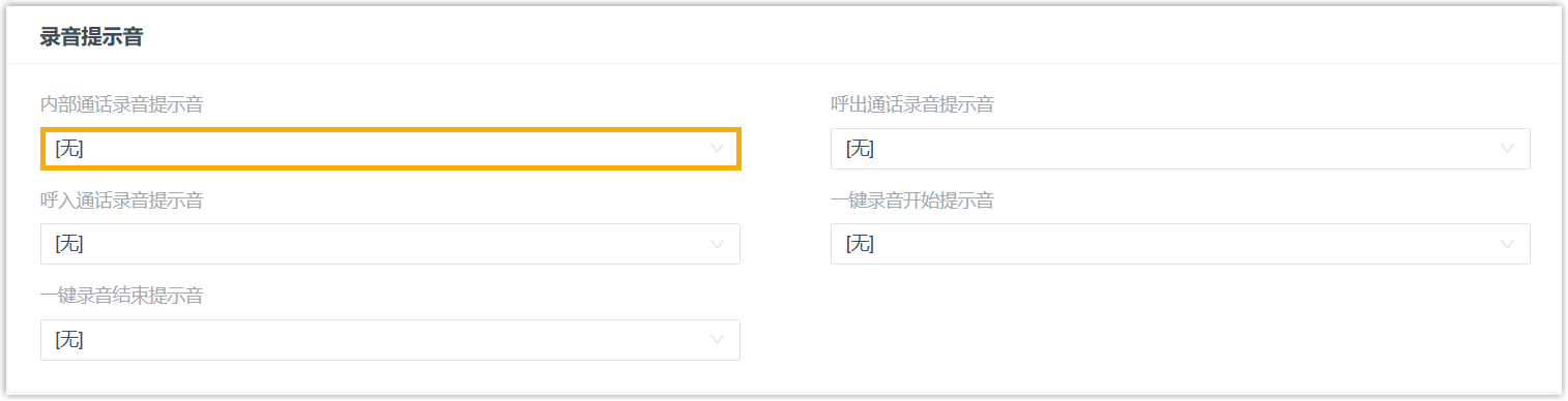 - 在 录音提示音 栏,从 内部通话录音提示音