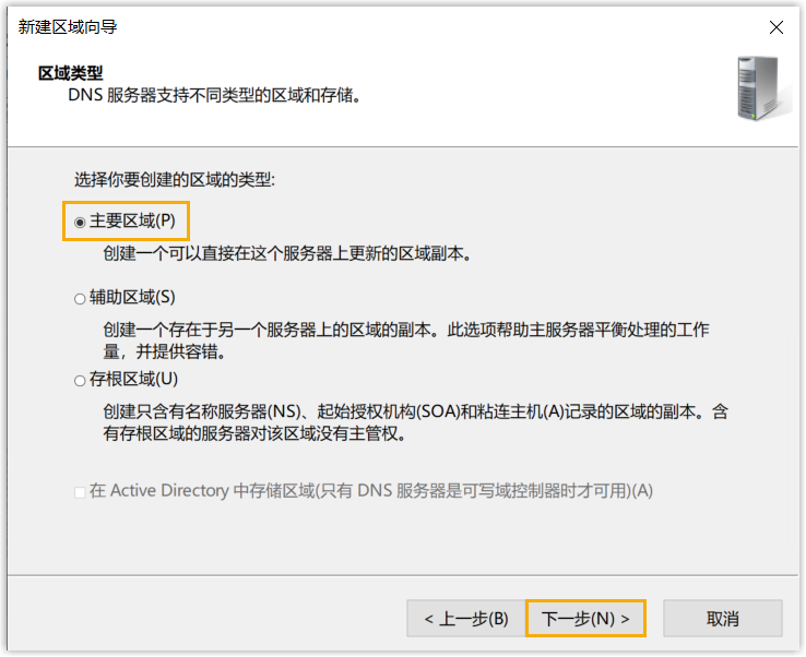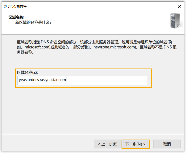 - 在 区域名称 页面,填写 PBX 的域名,然后点击 下一步(N)