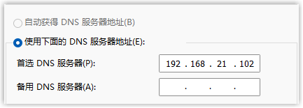 - 选择 使用下面的 DNS 服务器地址 (E),然后输入内部 DNS 服务器的 IP 地址