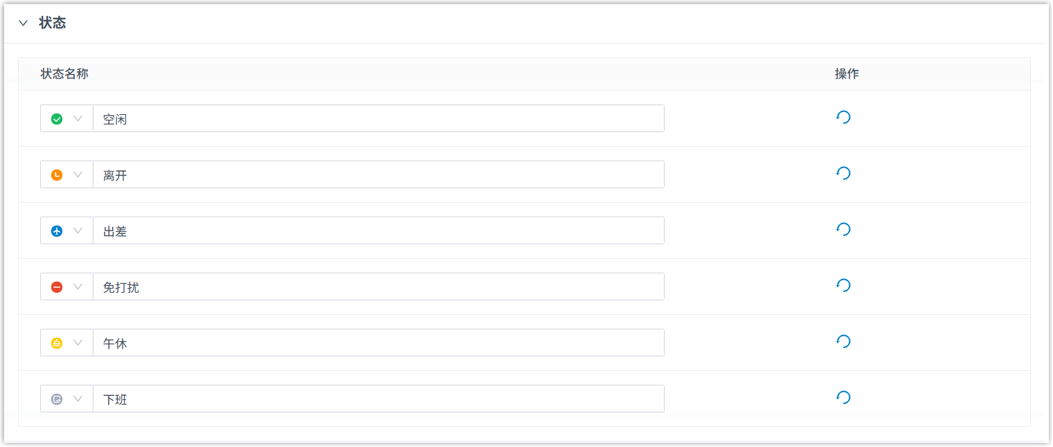 自定义状态信息,用于展示分机用户的当前状态。状态设置将同步至以下版本的 Linkus UC 客户端: