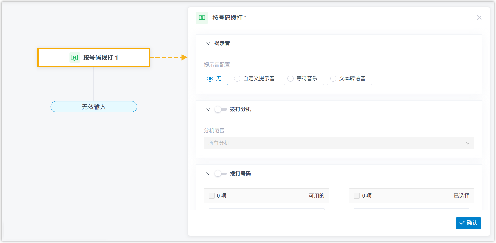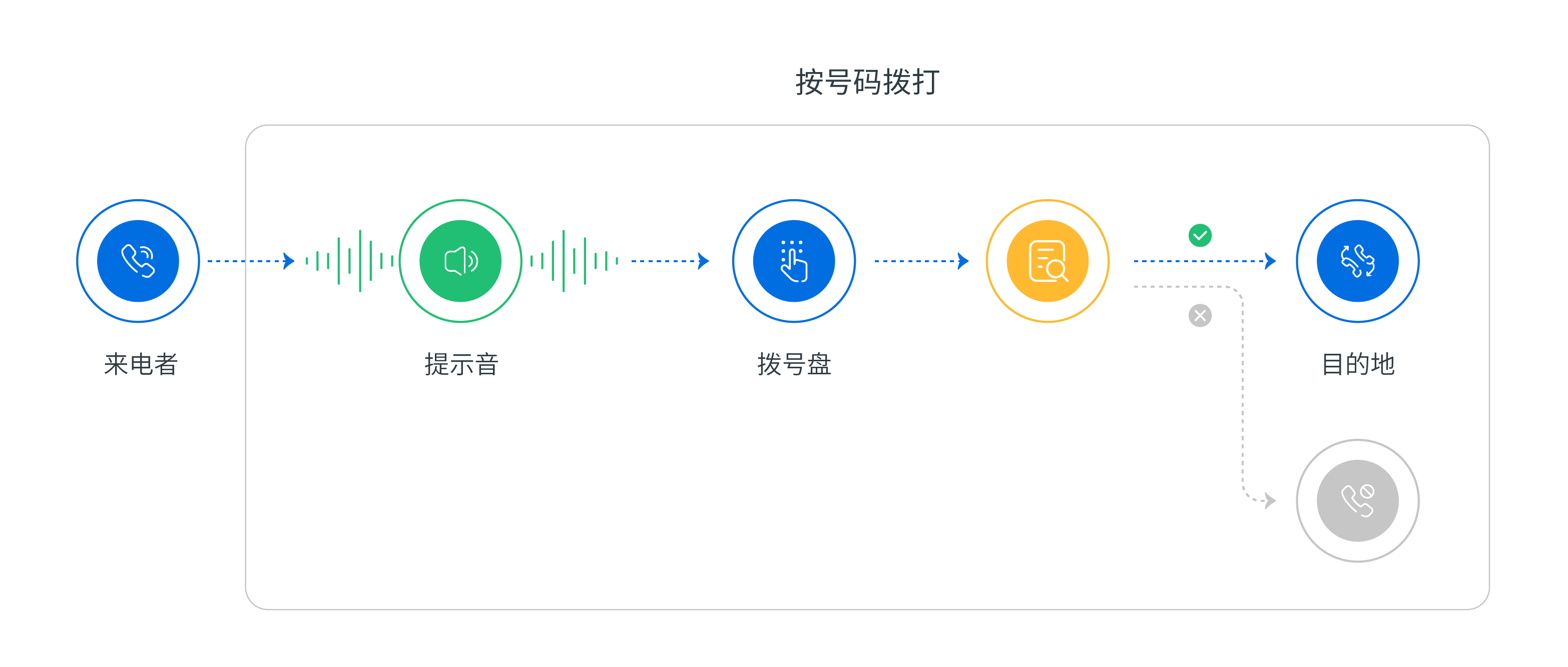 按号码拨打 组件用于引导来电者通过输入号码将来电转接至指定的目的地,实现快速呼叫。