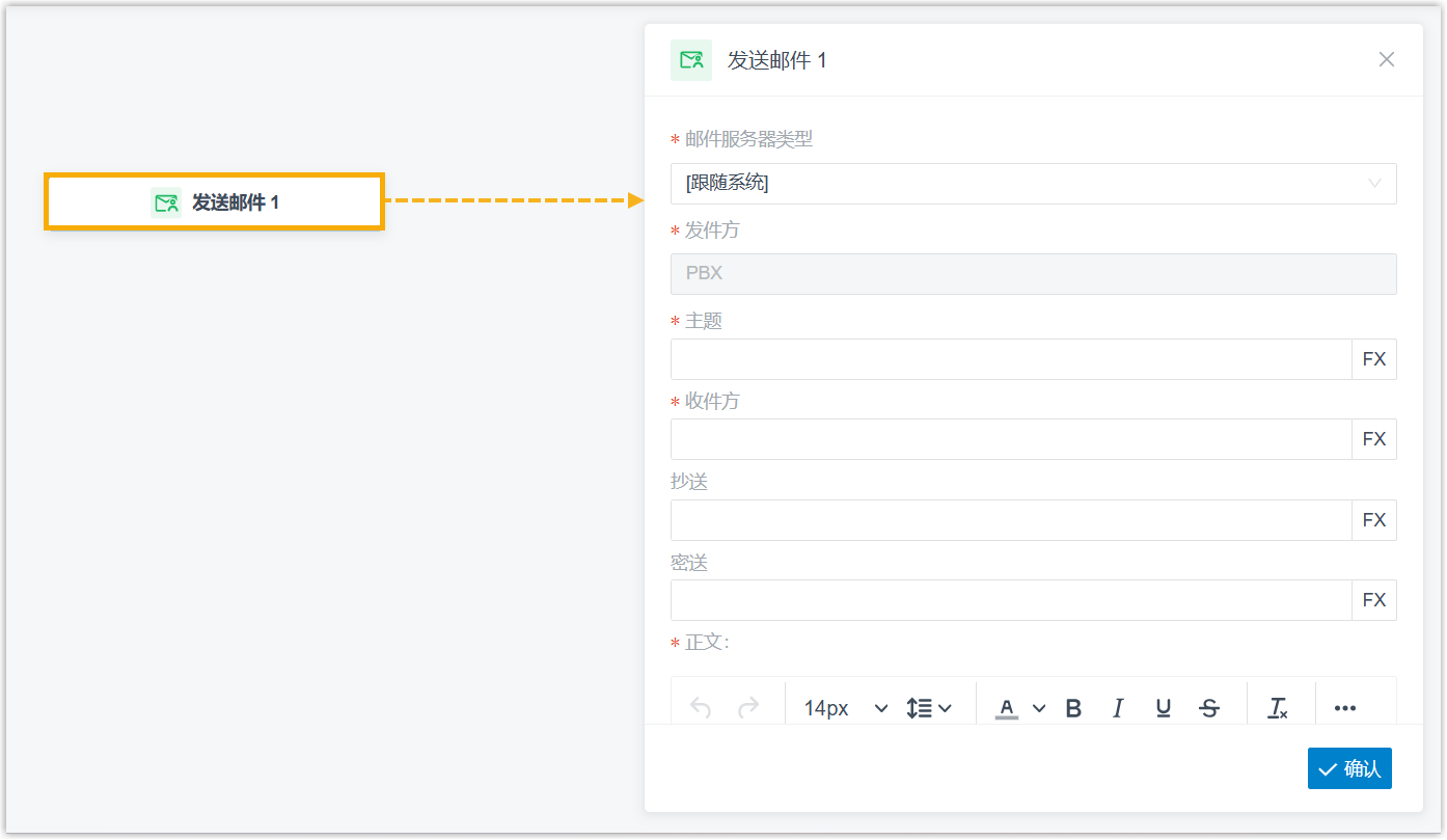 - 添加 发送邮件 组件至通话流程后,点击组件进行配置。