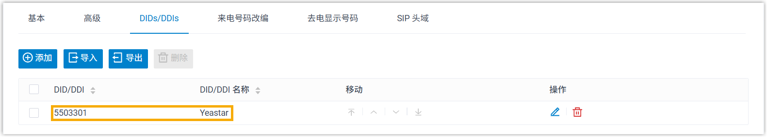 如果 PBX 接收到的来电号码位数 ≤ 7 位,需与配置的 DID 完全匹配。
