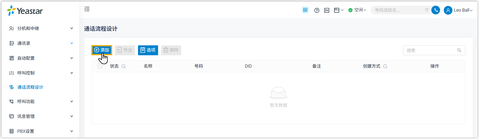 - 登录 PBX 网页,进入 通话流程设计。