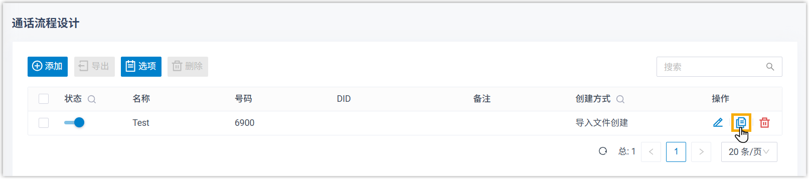 你可以通过复制现有流程或导入 JSON 文件,快速搭建通话流程。