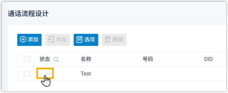 - 在通话流程列表,打开开关。