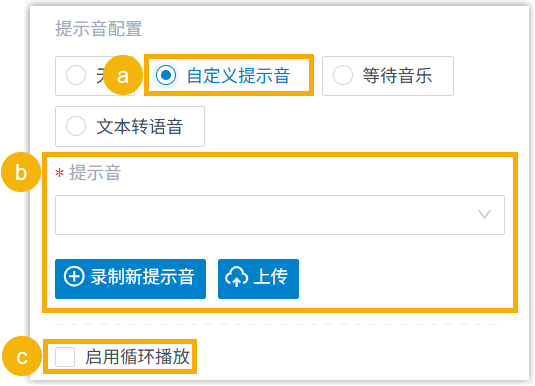 3. 可选: 如需循环播放自定义提示音,勾选 启用循环播放