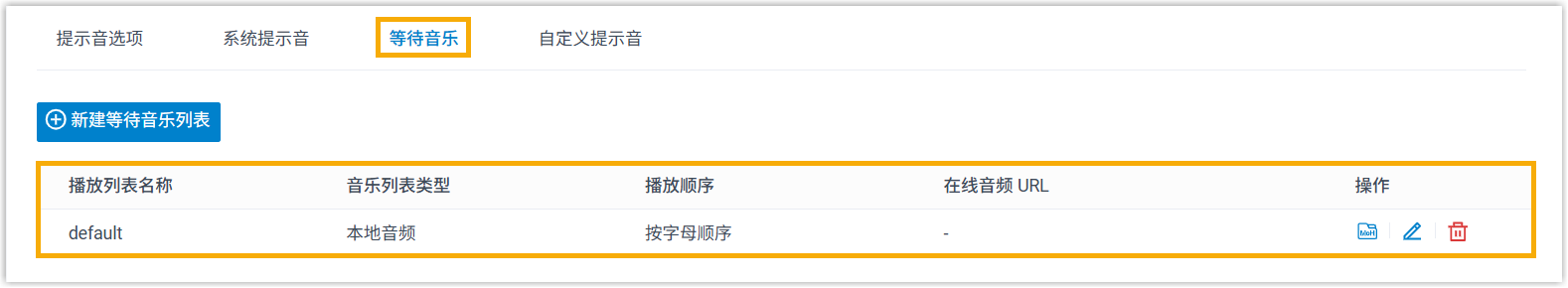 注: 开始之前,确保在 PBX 设置 > 提示音 > 等待音乐 中完成相关设置。