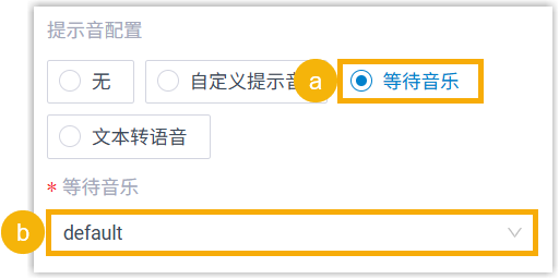 注: 如果后续组件配置了提示音,等待音乐将被覆盖。