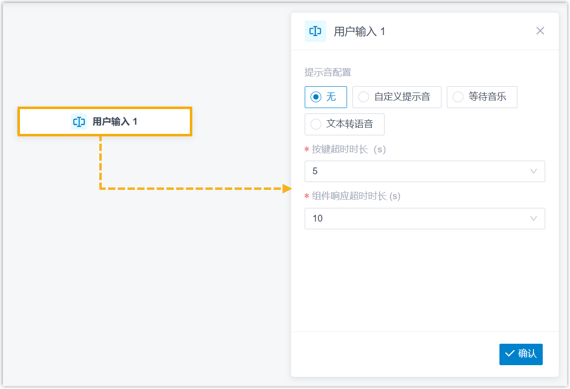 1. 添加 用户输入 组件至通话流程后,点击组件进行配置。