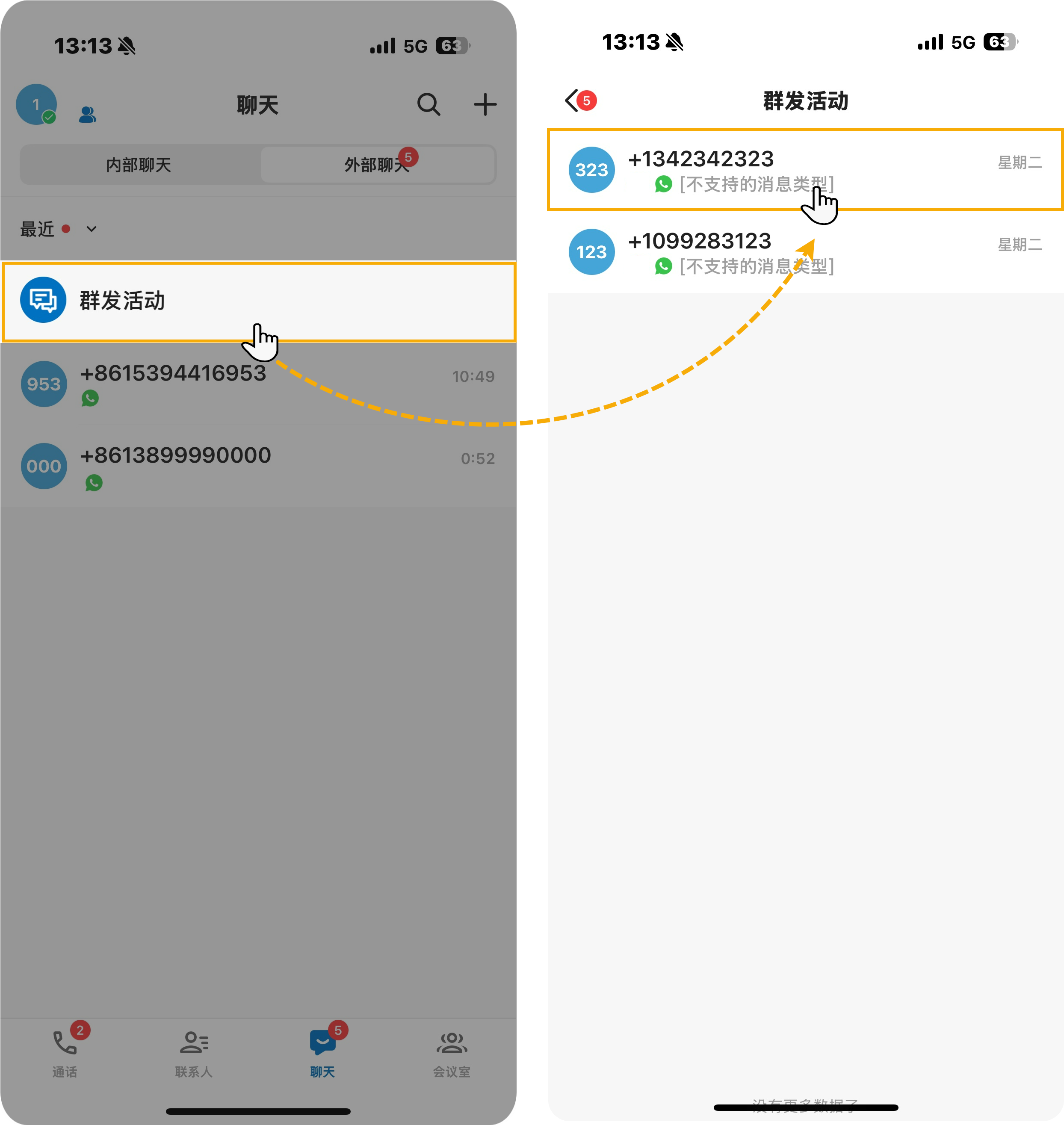 如果系统管理员将消息群发活动设置为批量发送,并将群发会话分配给你的分机或你所在的消息队列,你可以查看和管理这些群发会话。