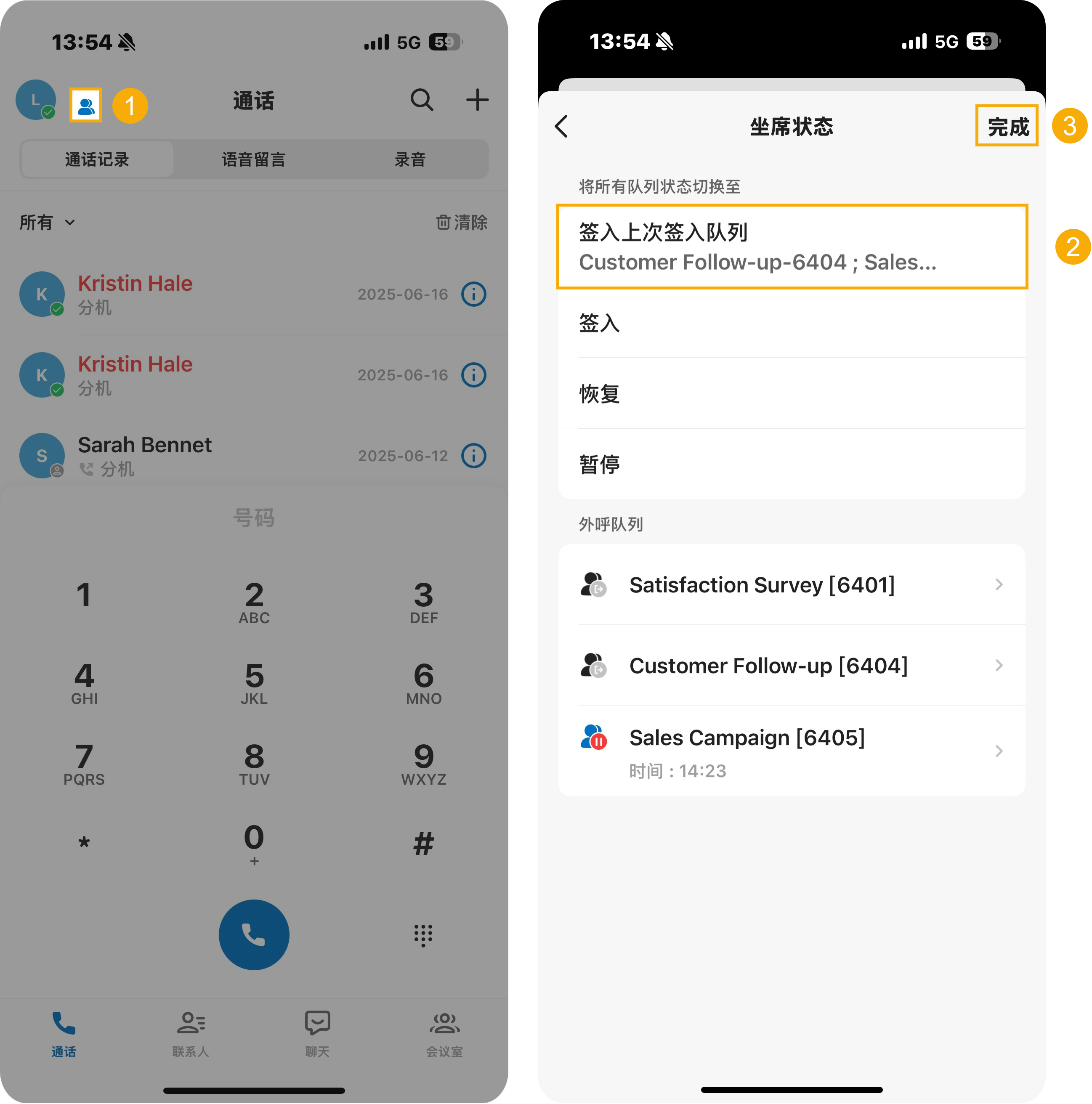 作为隶属于一个队列或多个队列的坐席,你可以在 Linkus 手机端上更改自己在特定队列或所有队列中的状态。本文介绍如何签入/签出队列,以及如何暂停/恢复接收队列来电。