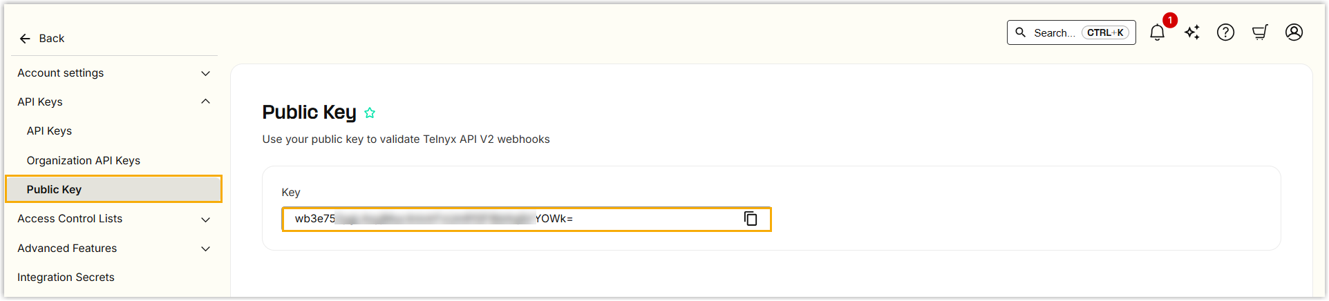 - Public Key:粘贴 从 Telnyx 获取的 Public Key。