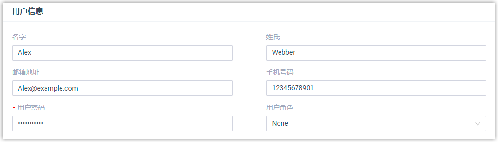 3 在 用户信息 栏,填写 Alex 的基本信息。