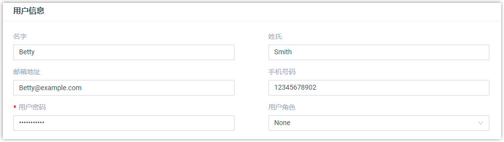 3 在 用户信息 栏,填写 Betty 的基本信息。
