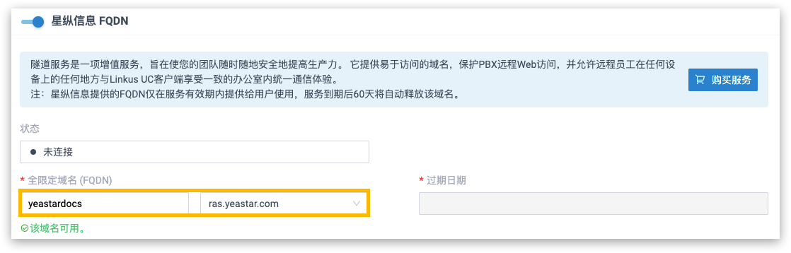 1) 进入 系统 > 网络 > 星纵信息 FQDN,启用 星纵信息 FQDN。