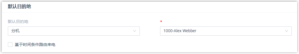3在 默认目的地 栏,选择 Alex 分机作为来电目的地。