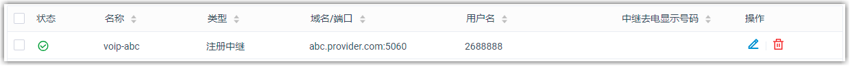 要拨打或接听外线电话,你需要一个商用号码(在 IPPBX 中称之为“中继”)。本教程以 VoIP 中继为例,帮助你与外部网络建立通信。 如下所示为 abc 运营商提供的 VoIP 中继信息: