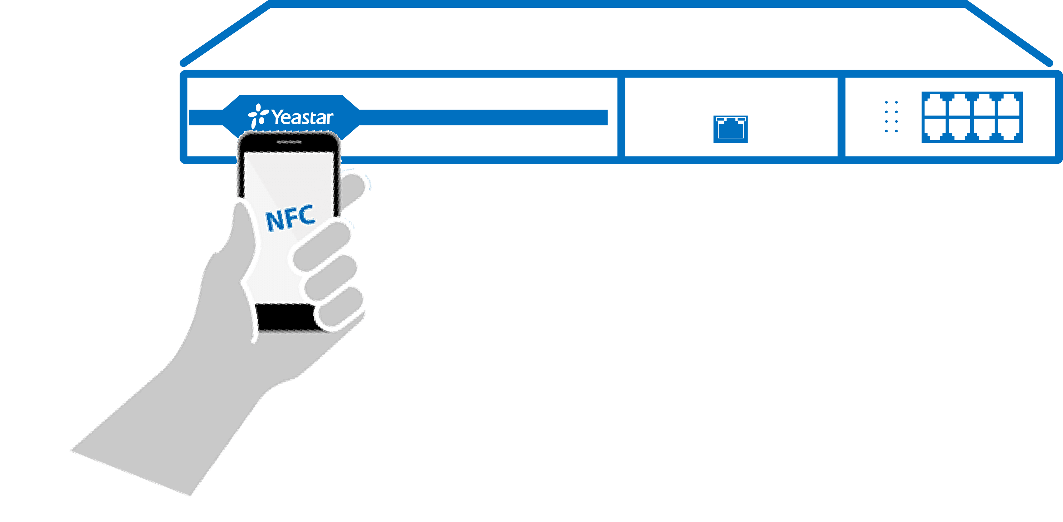 3手机的 NFC 检测区域靠近 IPPBX 上的 Yeastar 产品图标。 Linkus 手机端会显示网络配置页面。