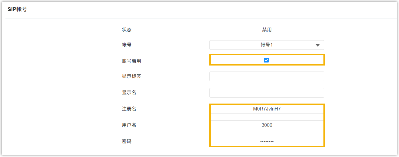 - 下拉至 首选SIP服务器 栏,在 服务器地址 字段中,输入 PBX 的 IP 地址或域名。