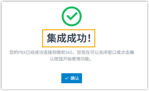 在集成页面中,对接状态显示 已连接,表示 PBX 已成功连接到组织的 Microsoft Entra ID 目录。注: PBX 自动在 Microsoft Entra 创建了一个用于连接的应用程序;可使用 PBX 的序列号 (SN)