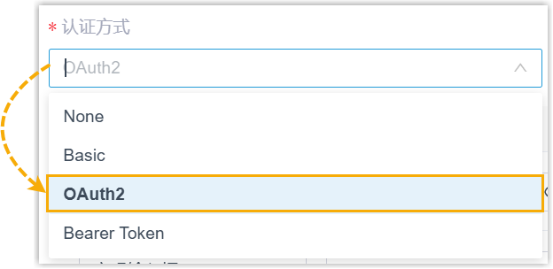 名称 为字段指定变量名称,模板中可根据需要引用此名称。 标题 为字段指定标题,将显示在输入框上方。 下拉选项值 如果 类型 设置为 下拉选项框,在此字段中输入选项。 注: 使用半角逗号,分隔多个选项,例如option1,option2。 - 配置 OAuth2 授权相关设置。