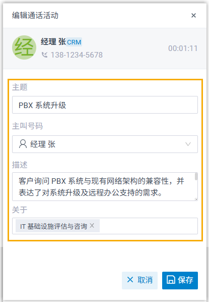 本文介绍了如何在通话中添加或更新通话活动详情,确保所有与通话相关的信息都能正确记录,以方便后续参考。