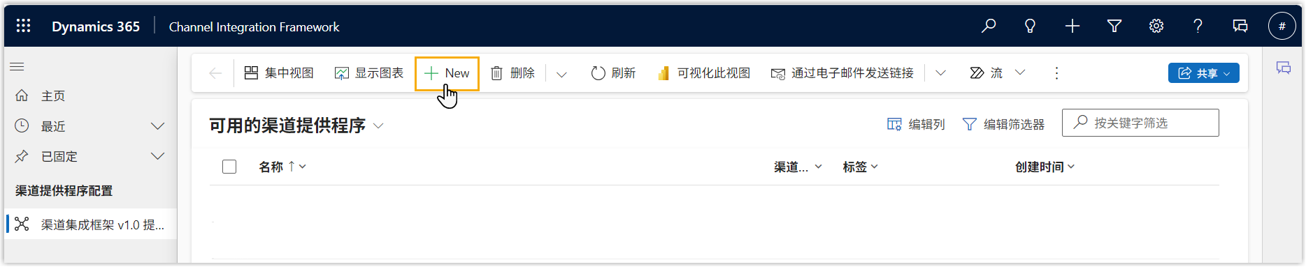 - 在顶部工具栏,点击 New 添加一个渠道提供程序。