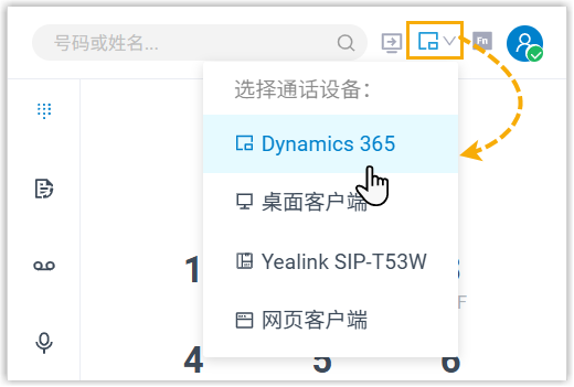 | 选择用于发起呼叫和接收来电的终端设备。 你可以直接使用 Dynamics 365 作为通话终端,或通过启用 CTI 控制来使用 Linkus 网页端、Linkus 桌面端 或 IP 话机 作为通话终端,从而在 Dynamics 365 中控制通话的同时,通过选定的终端发起呼叫或接收来电。