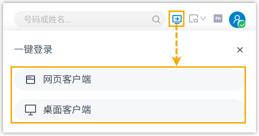 | 点击登录 Linkus 网页端或桌面端。 可通过点击此图标快速访问 Linkus 网页端和桌面端,无需输入凭据即可登录分机。
