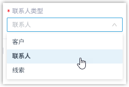 3. 创建联系人 下拉列表中,选择要新建的联系人类型。