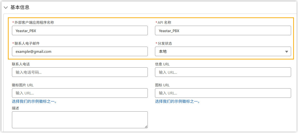 - 在 基本信息 栏,填写以下必填信息,并按需填写其他信息。