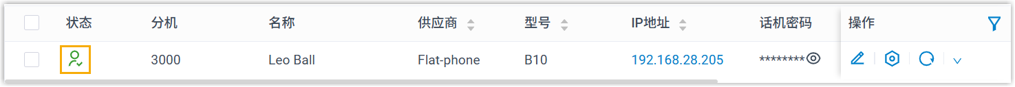 - 分机成功注册到 IP 话机上。你可以在 PBX 管理网页上查看注册状态 (路径:)。