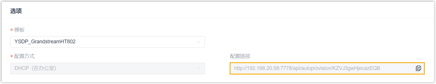 PBX 自动生成一个配置链接,显示在 配置链接 字段中。此链接指向网关配置文件所存储的位置。