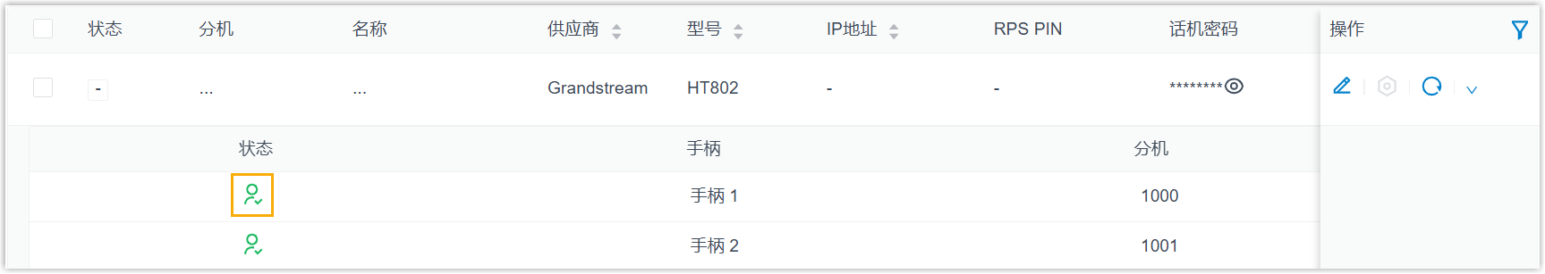 - 分机成功注册到网关上。你可以在 PBX 管理网页上查看注册状态 (路径:)。
