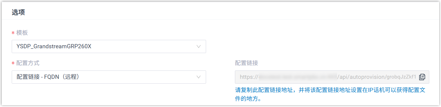 配置链接 字段中显示一个配置链接,指向话机配置文件所存储的位置。