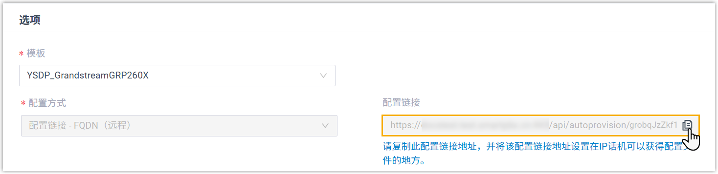 - 在 PBX 管理网页,进入话机详情页,复制配置链接。