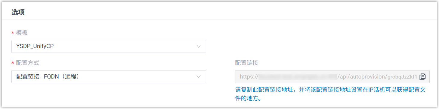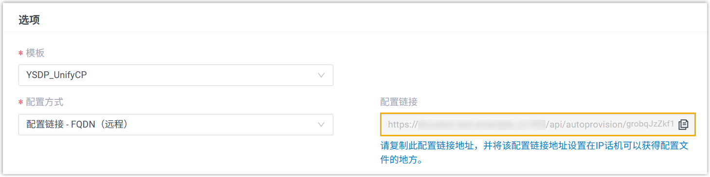 配置链接 字段中显示一个配置链接,指向话机配置文件所存储的位置。